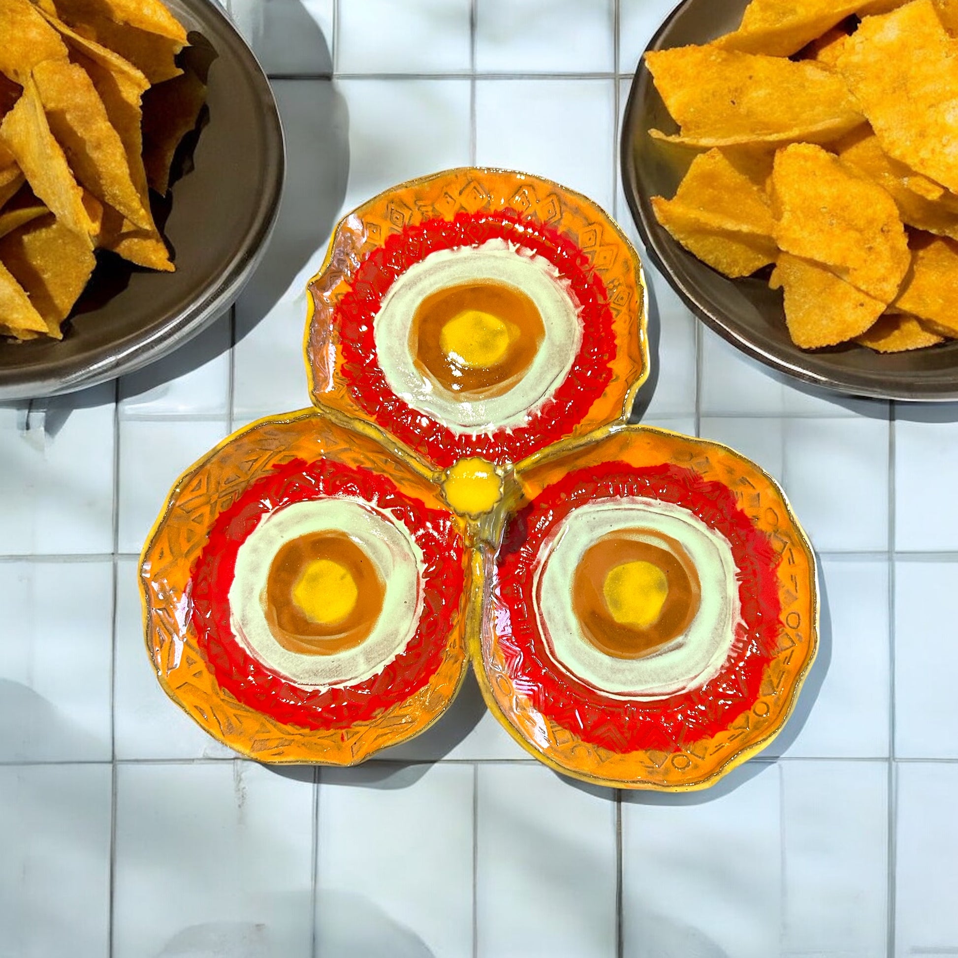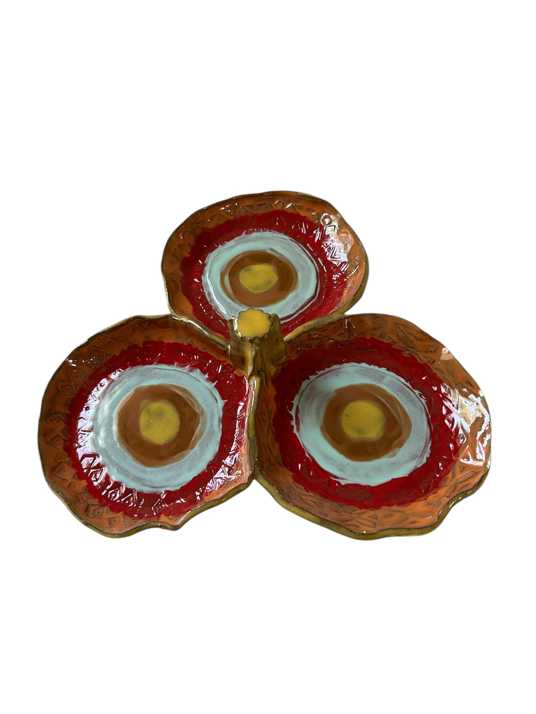 Handbuilt 3-Section Textured Condiment Tray #34 with Festive Southwestern Designs and Bold Colors