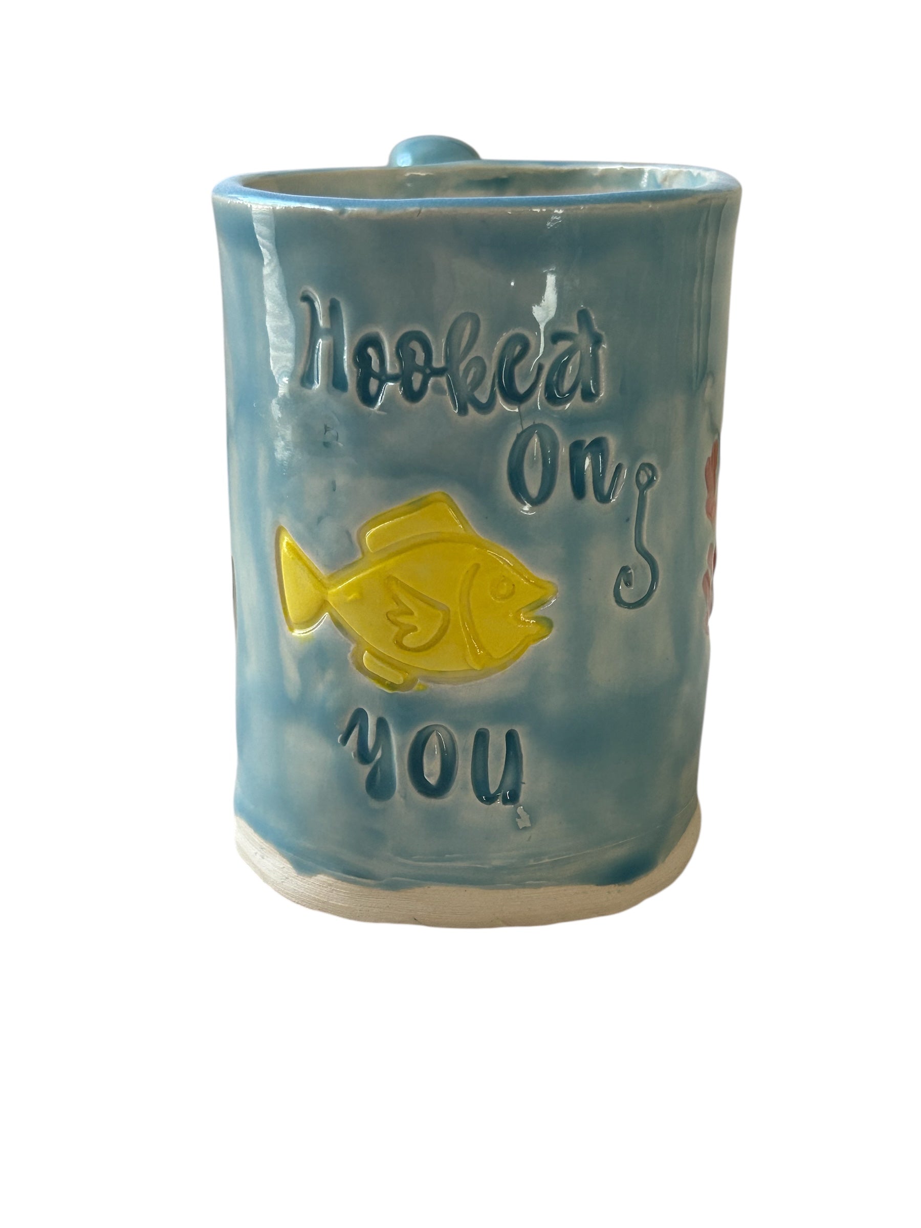 Handbuilt Mug #10 with Stamped Hooked on You Design
