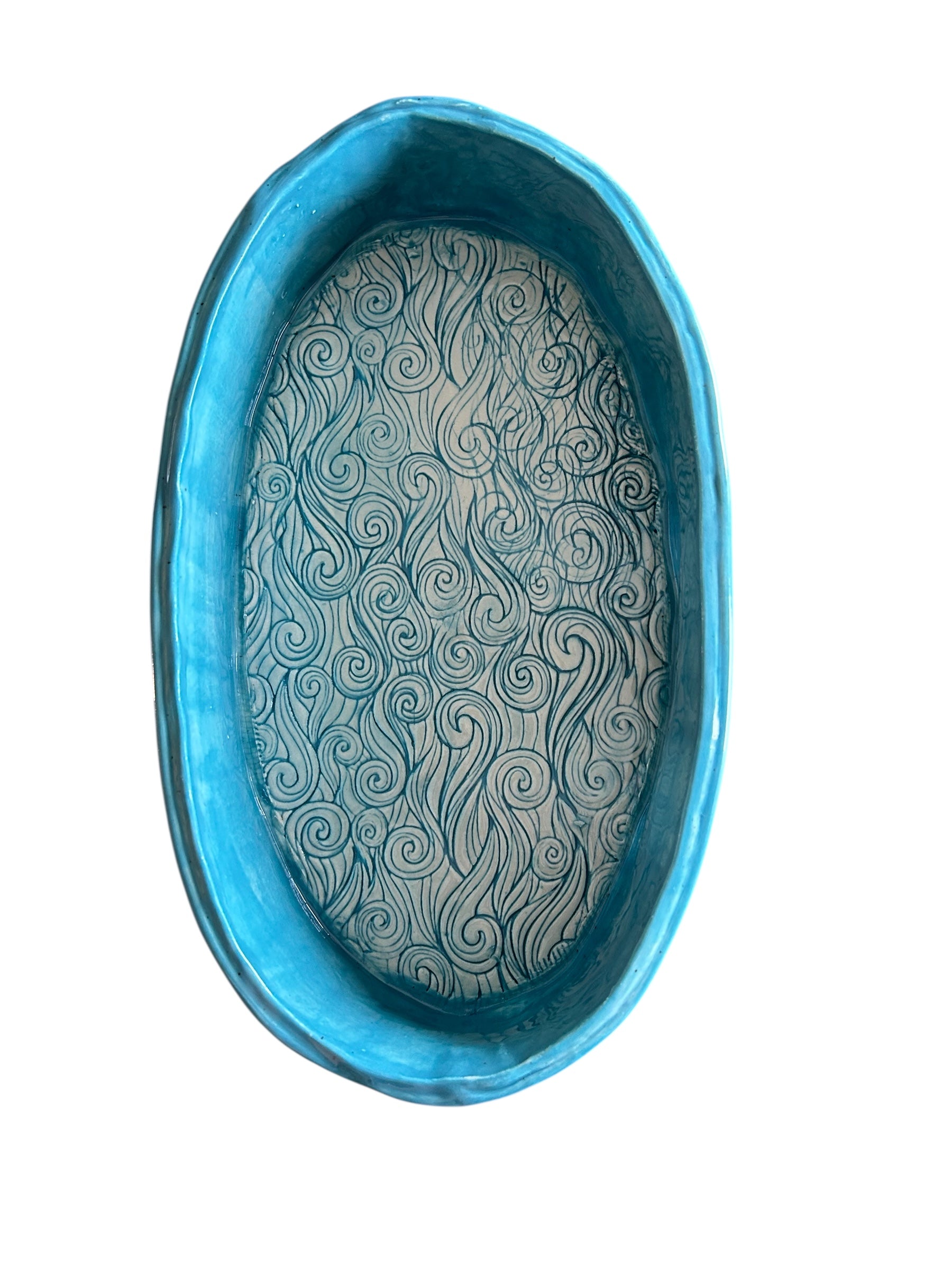 Oval Extruded Casserole #2 with Textured Waves Designs in Turquoise Green