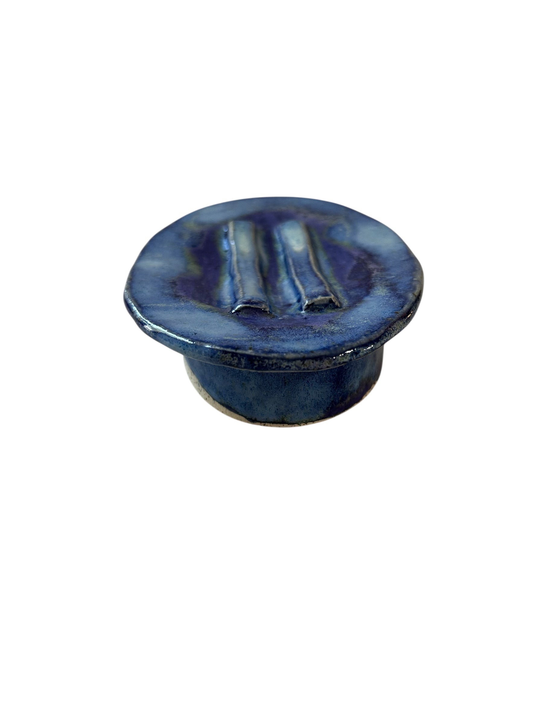 Pedestal-Style Handbuilt Slab Pottery Soap Dish #49 in Aspen Blue