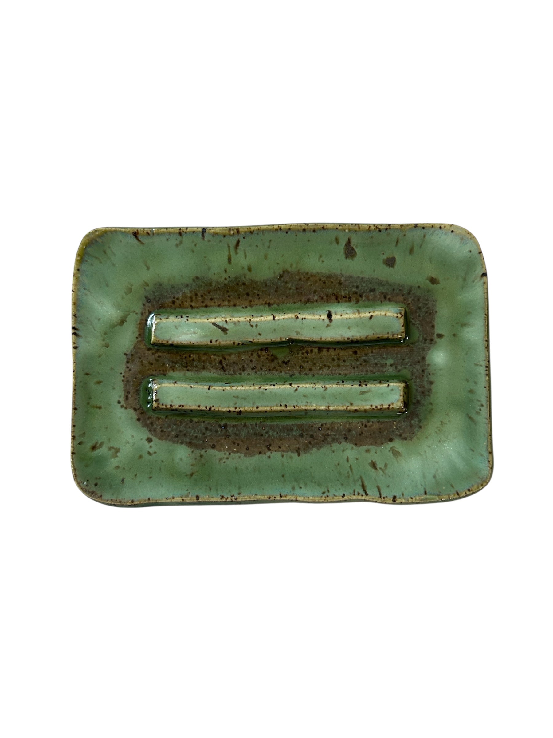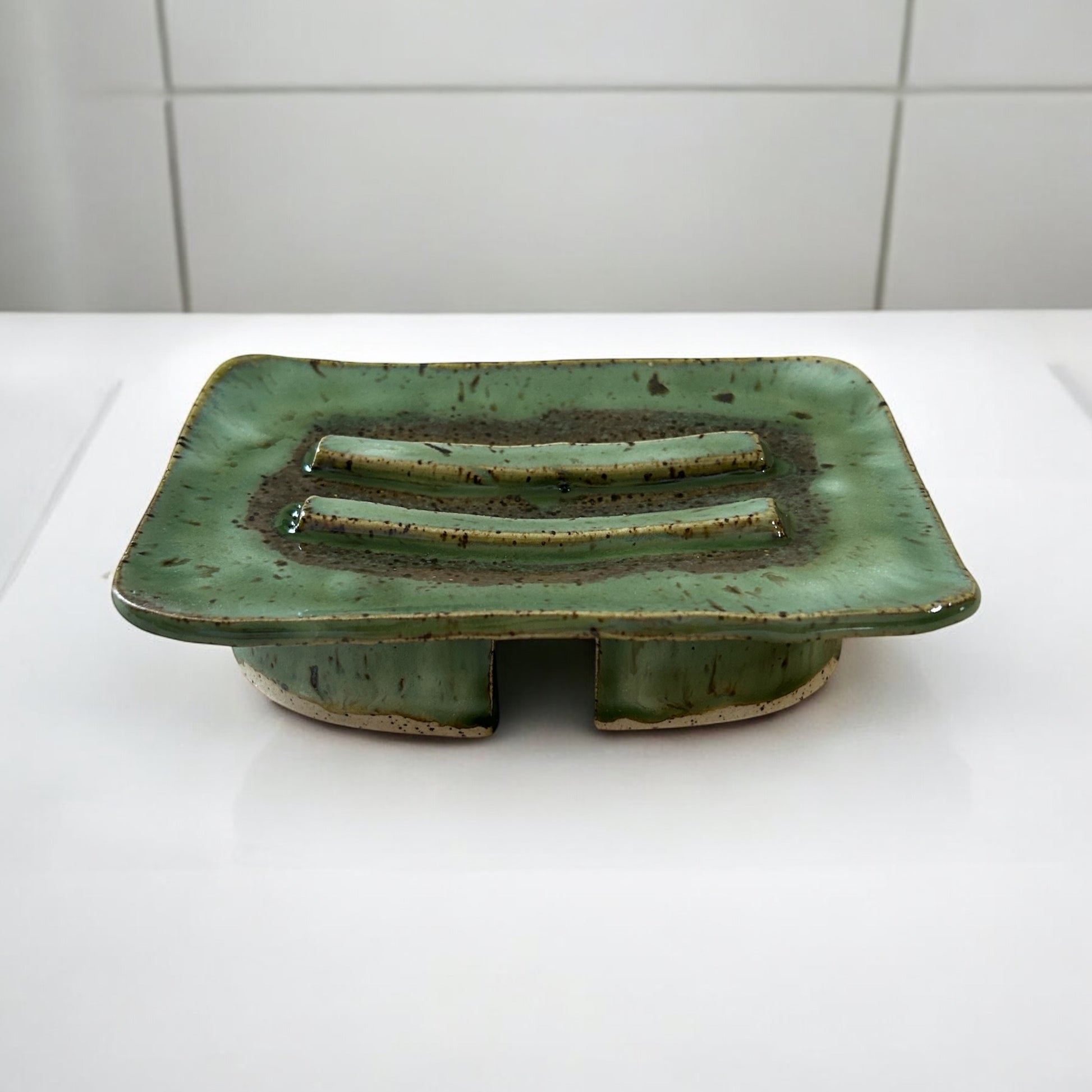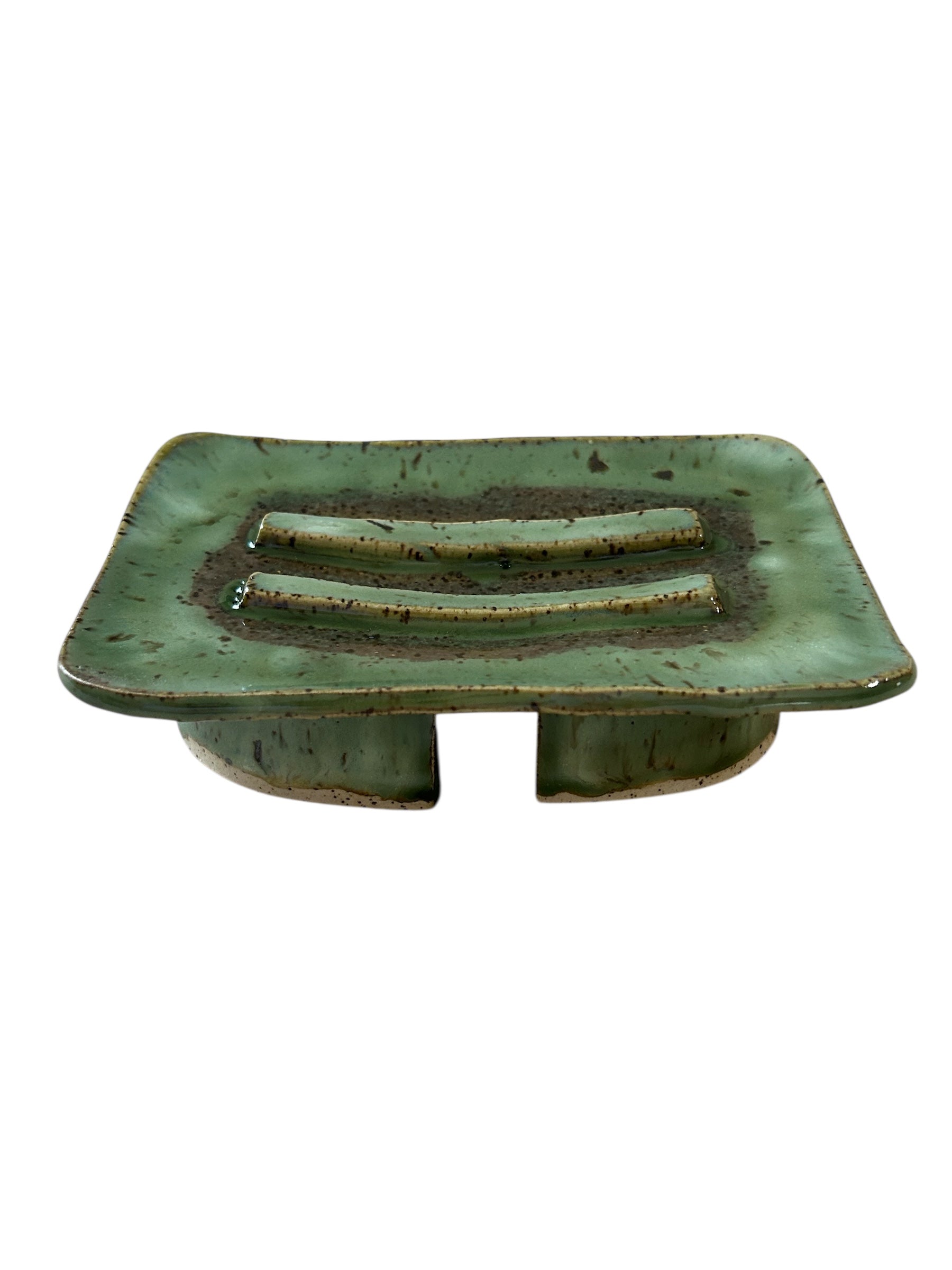 Pedestal-Style Handbuilt Slab Soap Dish #48 in Aspen Green