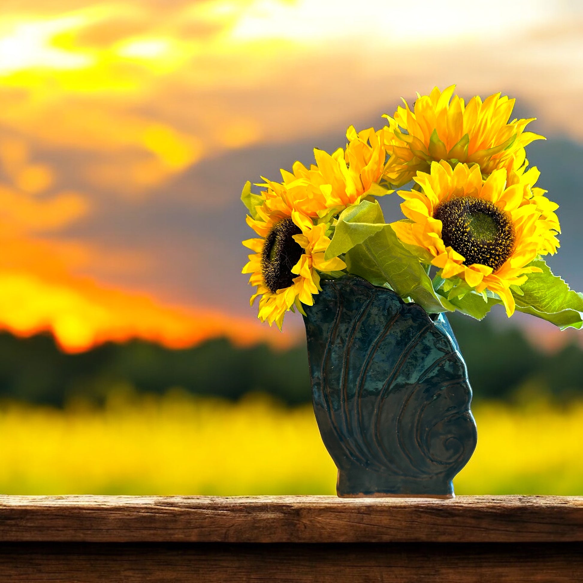 Medium Retro Camark-Style Nautilus Shell Vase or Planter in Deep Sea Blue
