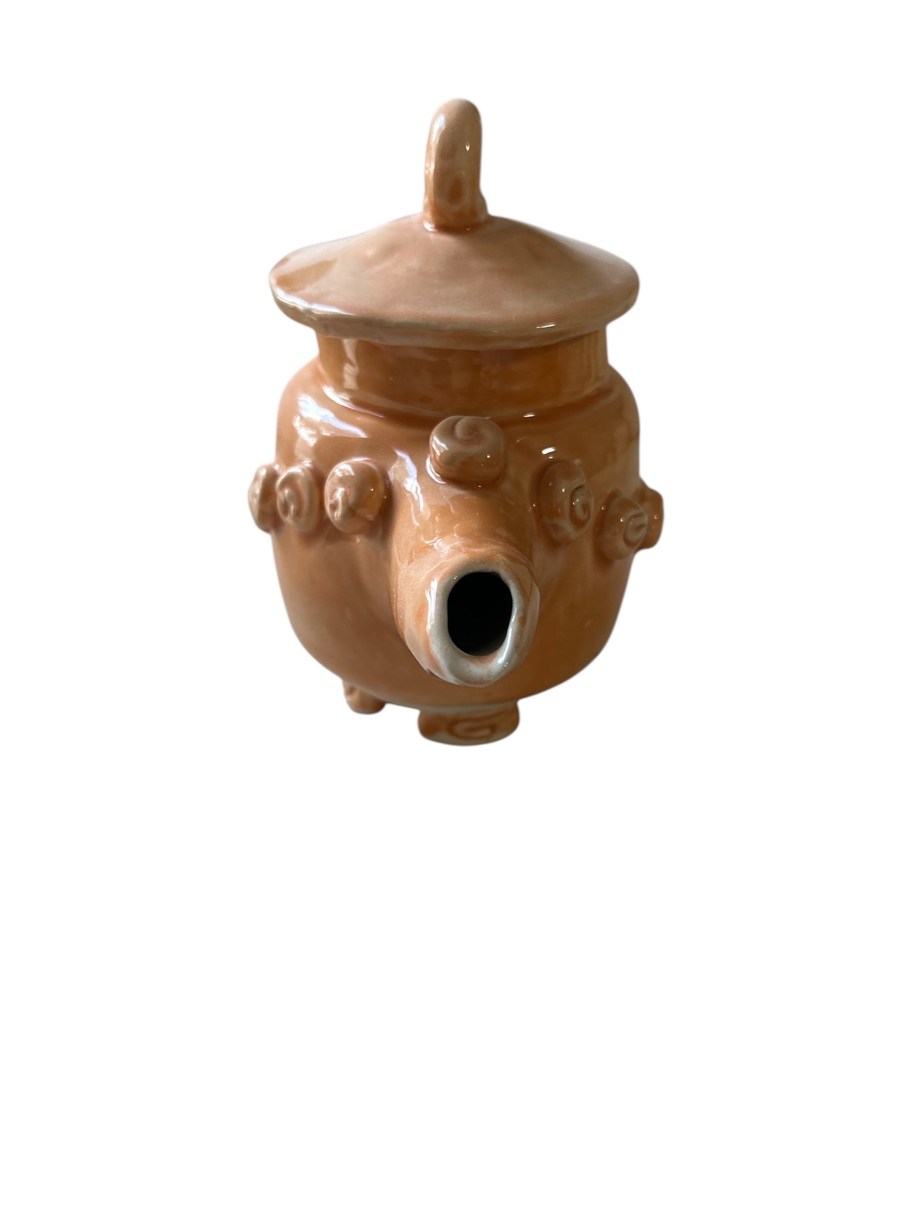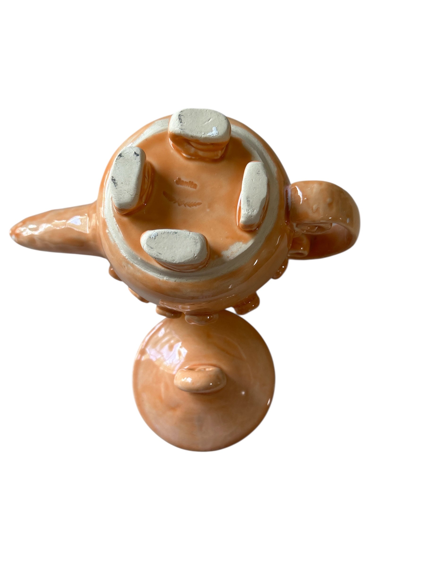 Set of Whimsical Teapot and Tea Cups with Saucers #6 in Tangerine Orange
