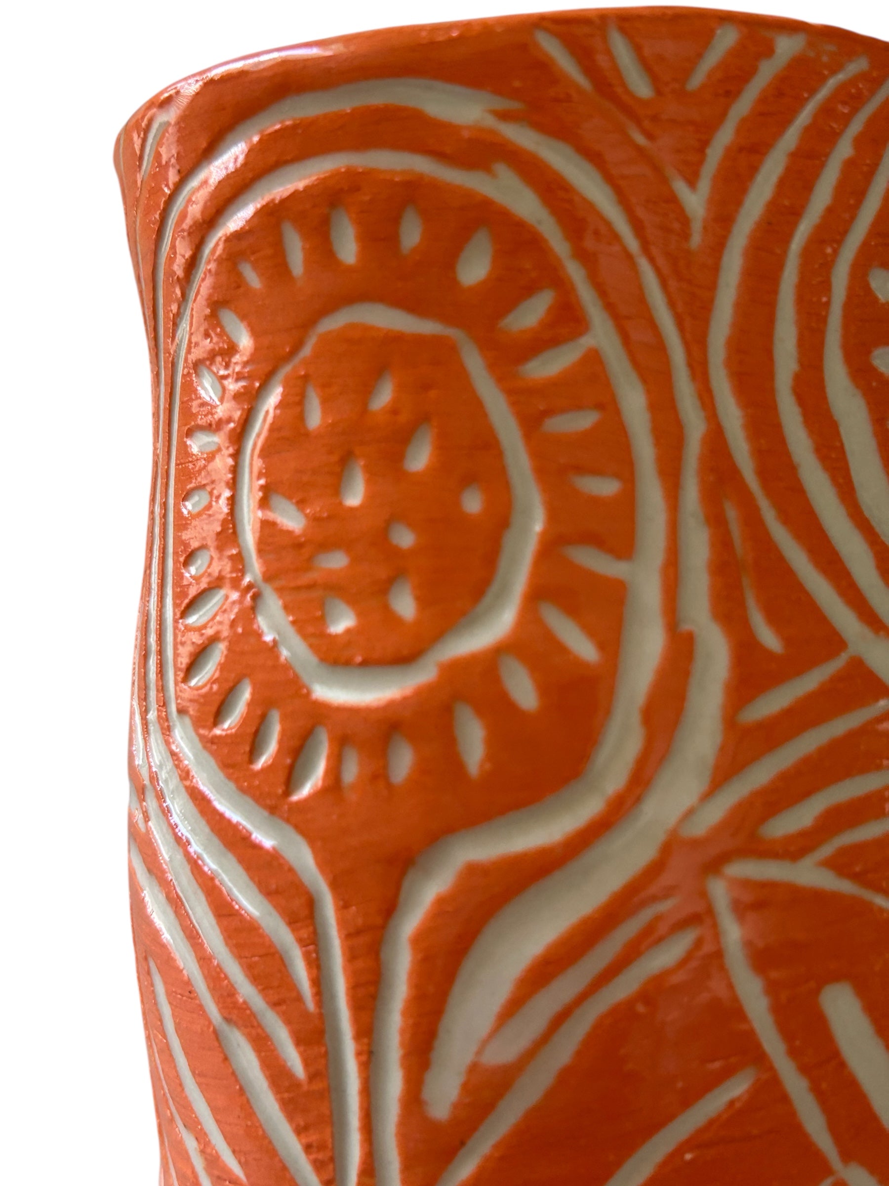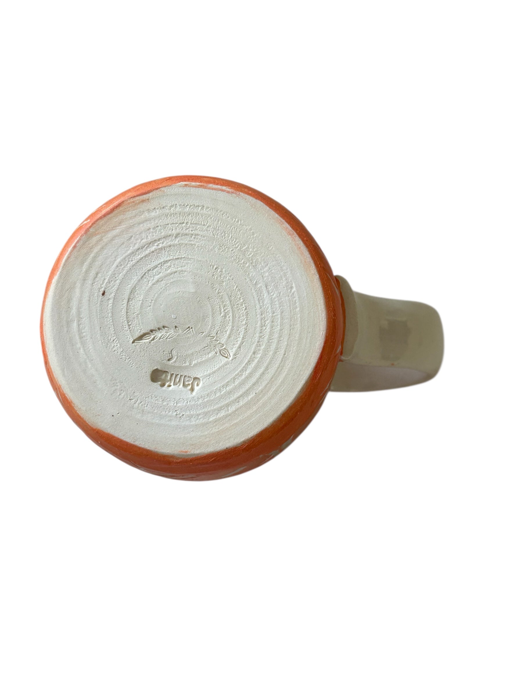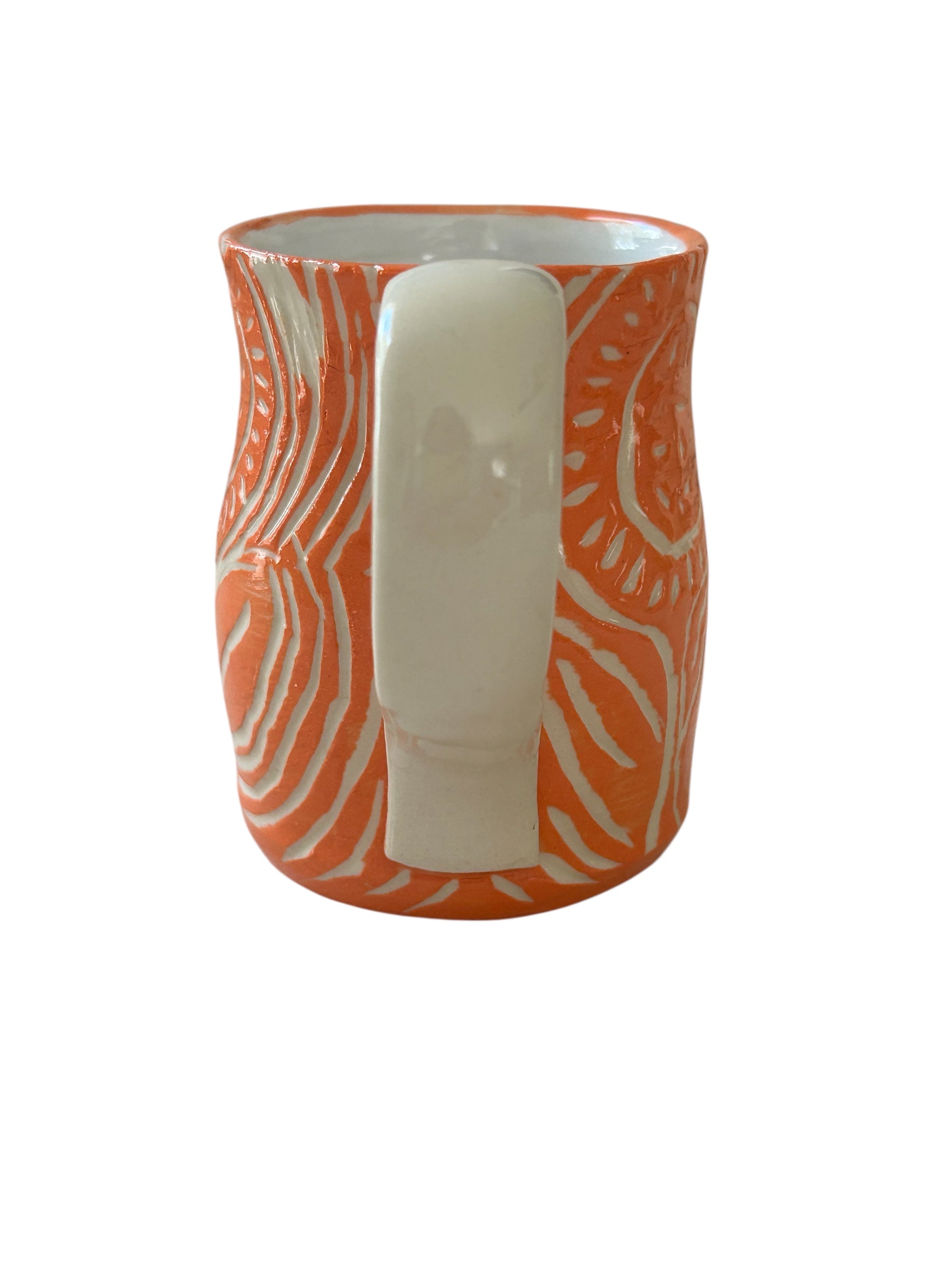 Sgraffito Mug #35 with Carved Art Deco Designs in Orange and Cream