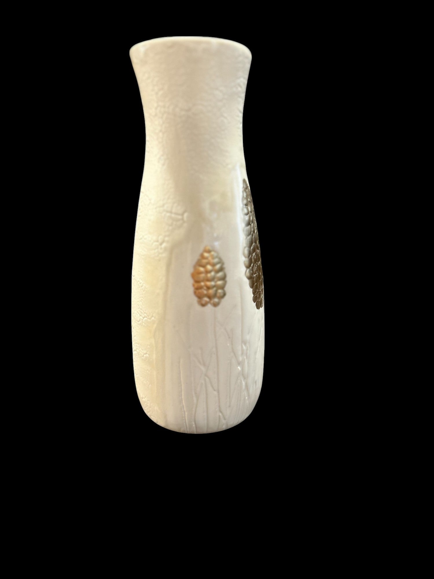 Slip Cast Textured Vase with Carved Grape Hyacinths with Gold Leaf Accents 7"
