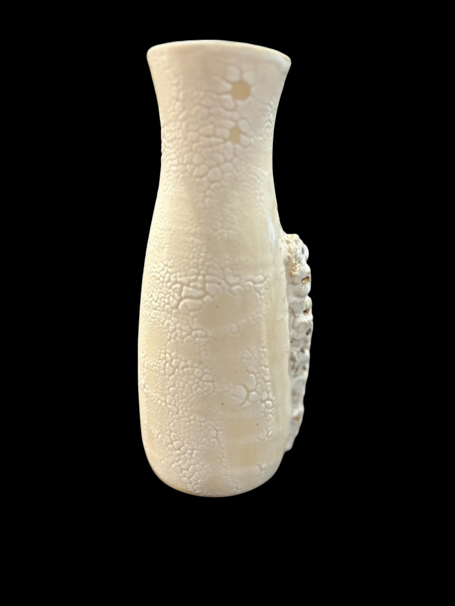 Slip Cast Textured Vase with Sculpted Blue Hyacinths and Gold Leaf Accents 7"