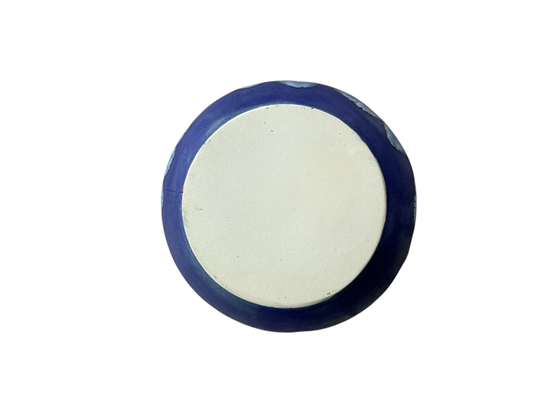 Small 5"D slip cast snack or nut bowl in Aspen blue, the color of Colorado's Rocky Mountains.