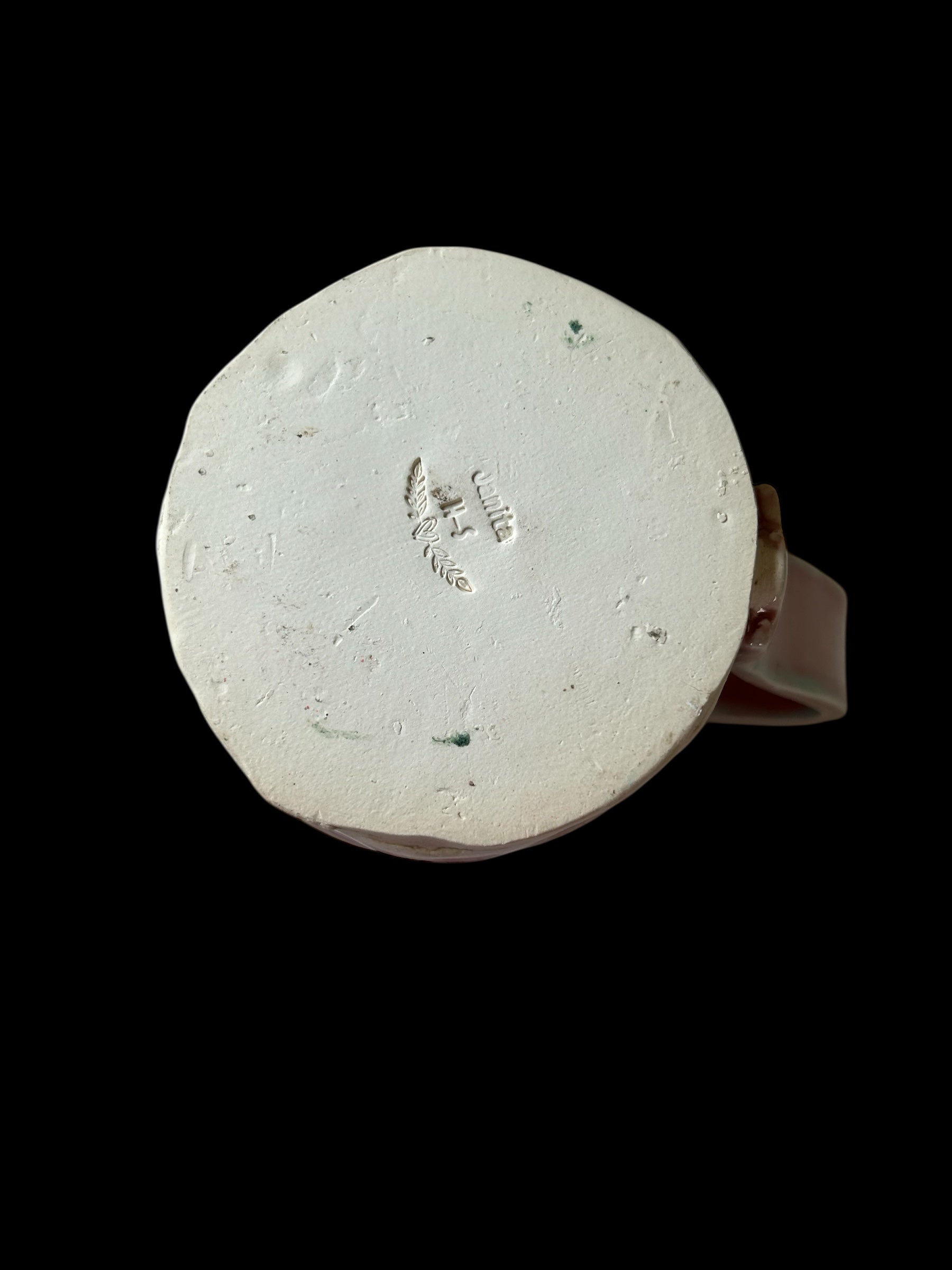 Stamped Handbuilt Art Deco Mug #31 with Stylized Leaves and Flowers in Plum and Aqua