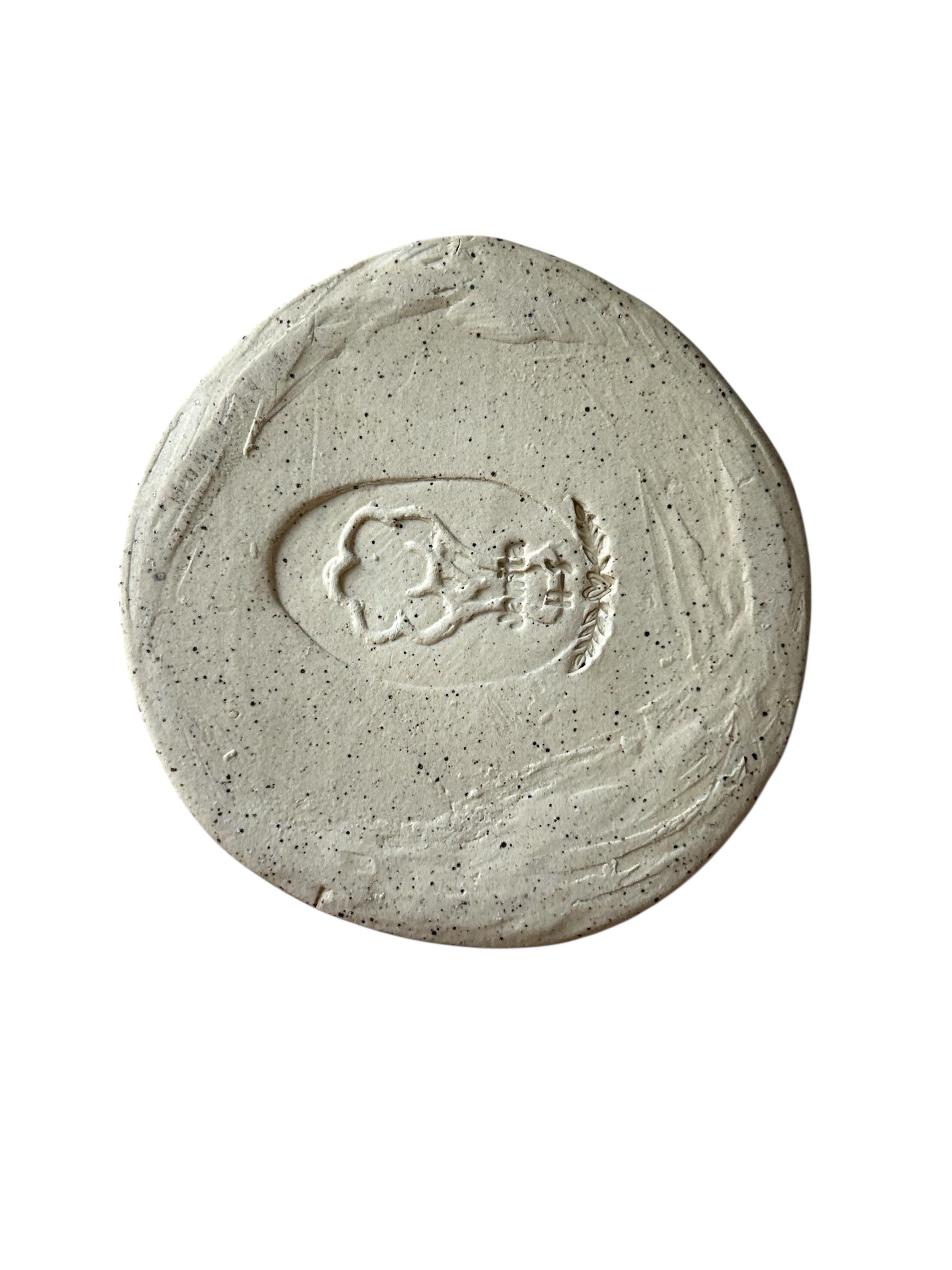 Tall hand-built vase, shaped from a large slab of speckled clay. Surface is adorned with multicolored leaves, which were created using the wax resist method, creating a slight rise from the surface. This large vase will hold and display an entire dozen roses or any large, long-stemmed floral bouquet.