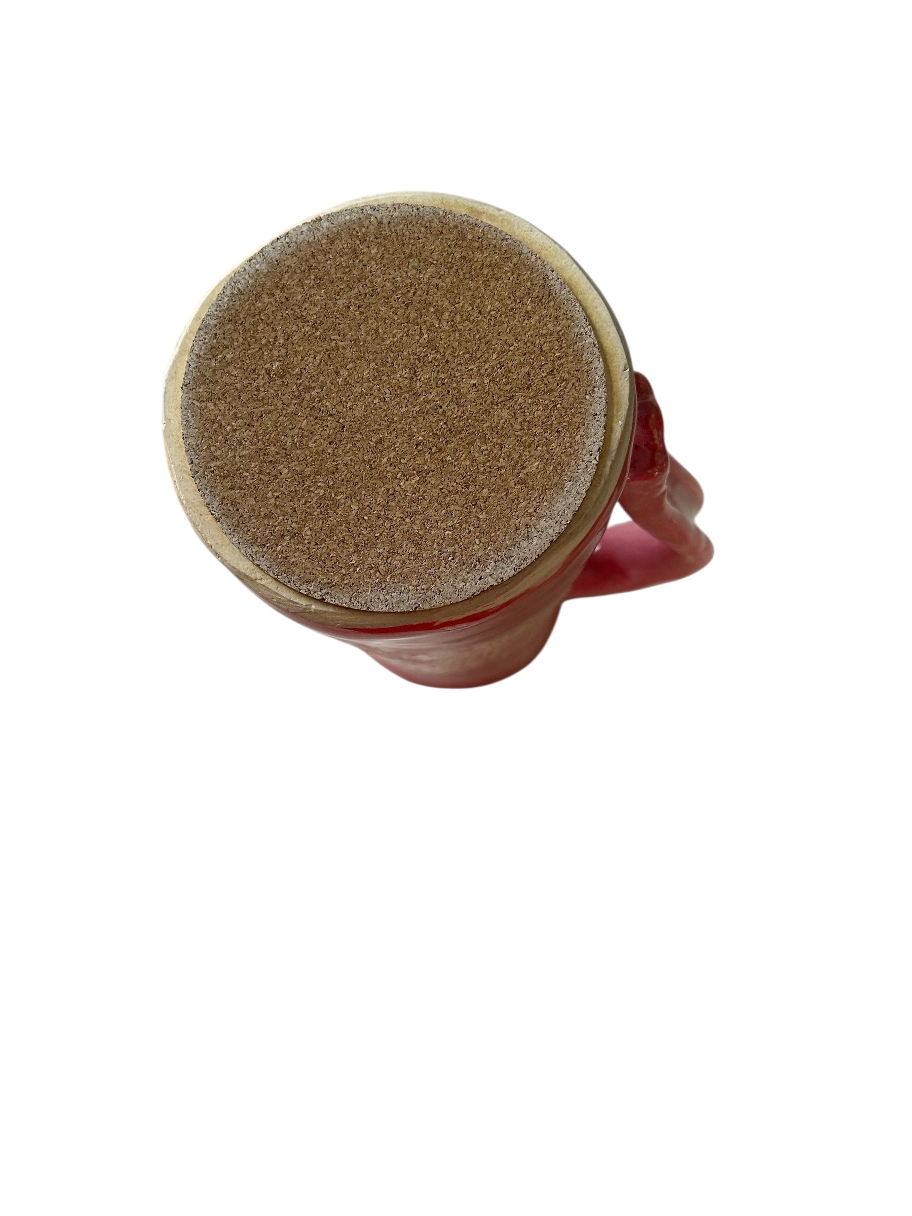 Tall pitcher textured with paisley flowers in pink and white. Holds approximately 56 ounces of liquid (without ice). Slab construction. Natural cork on bottom.