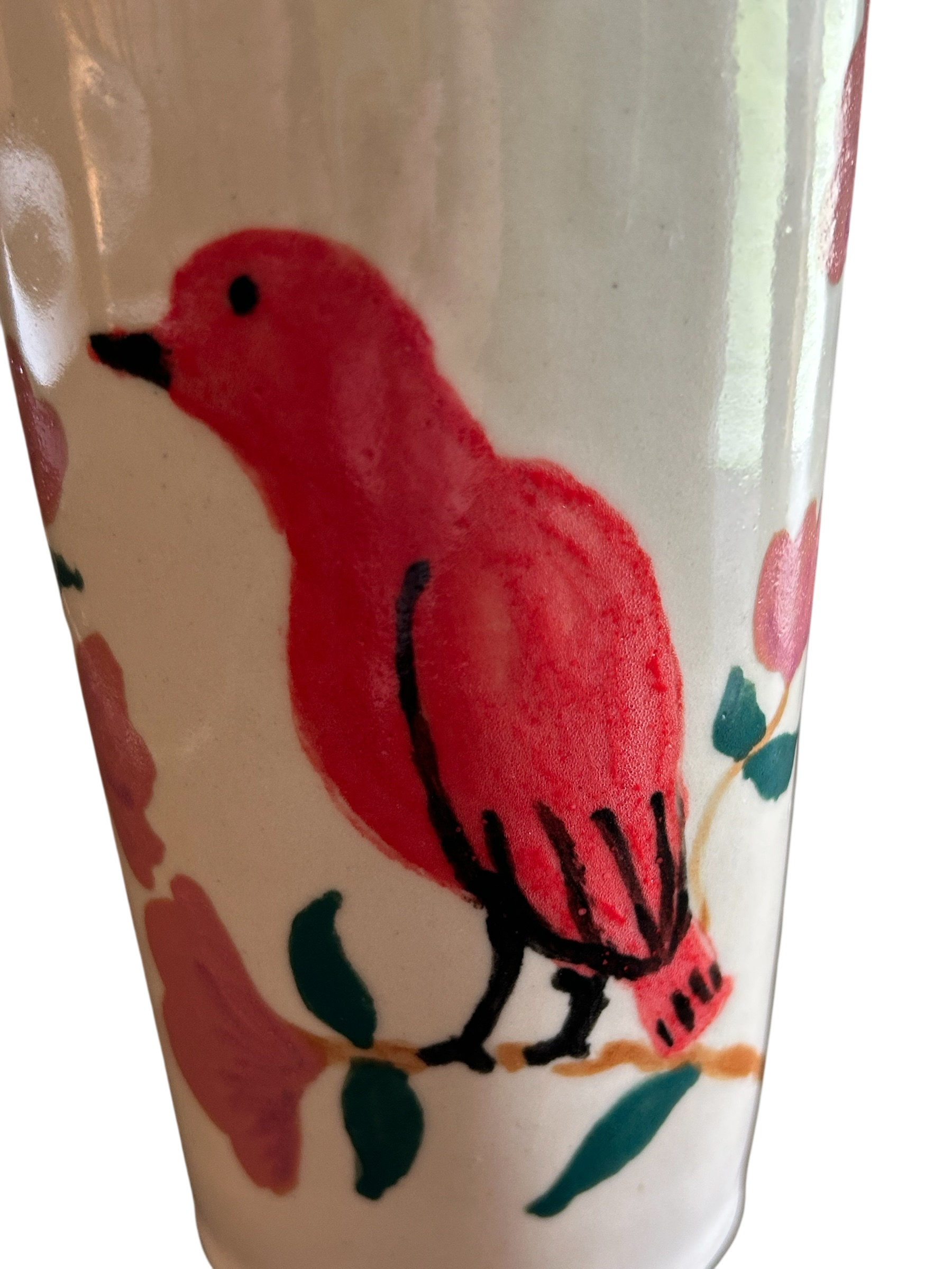 Travel Mug #1 with Handpainted Cardinal and Stylized Flowers
