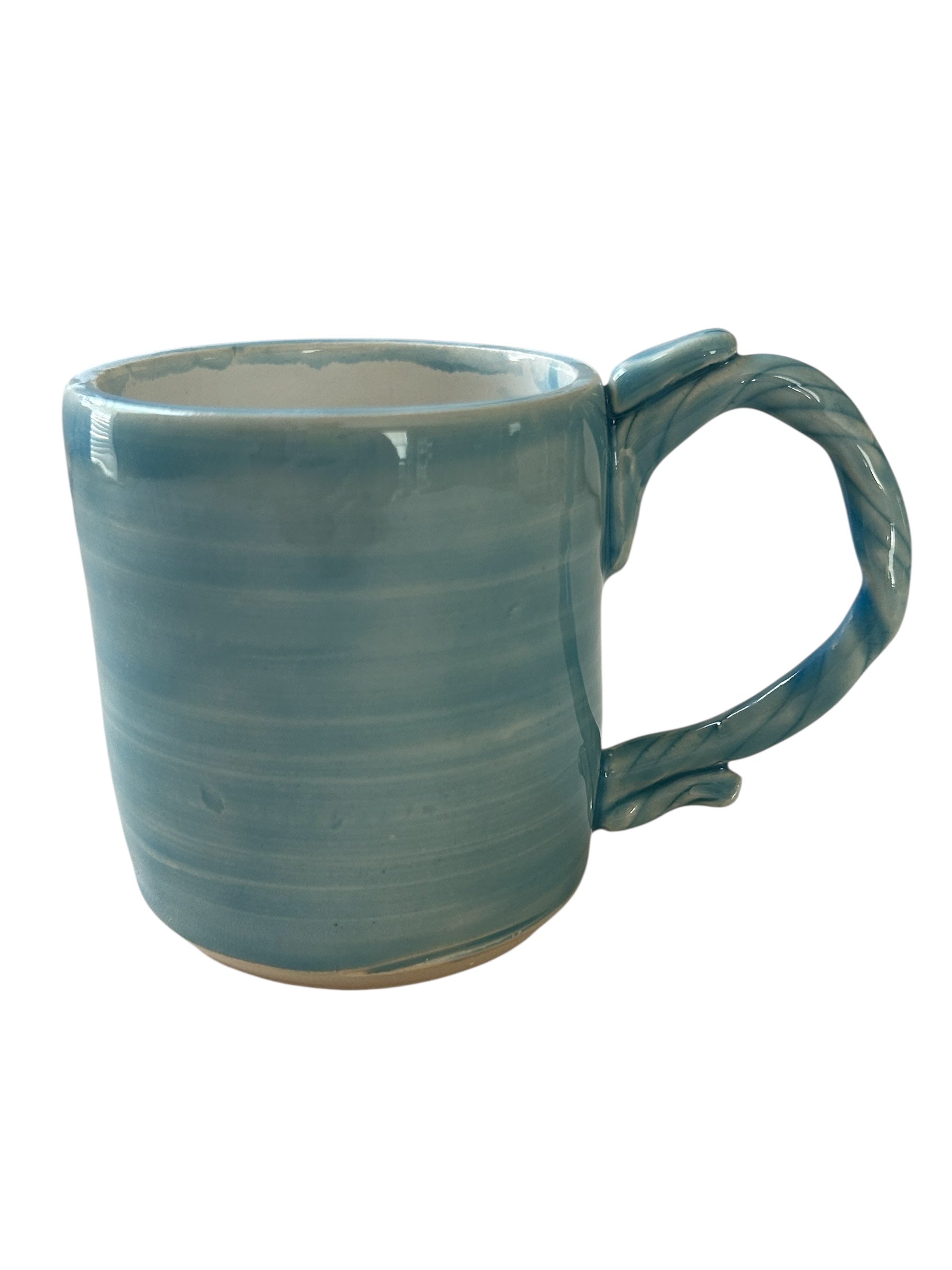 Wheel-Thrown Mug #17 with Rope Handle in Blue Lagoon