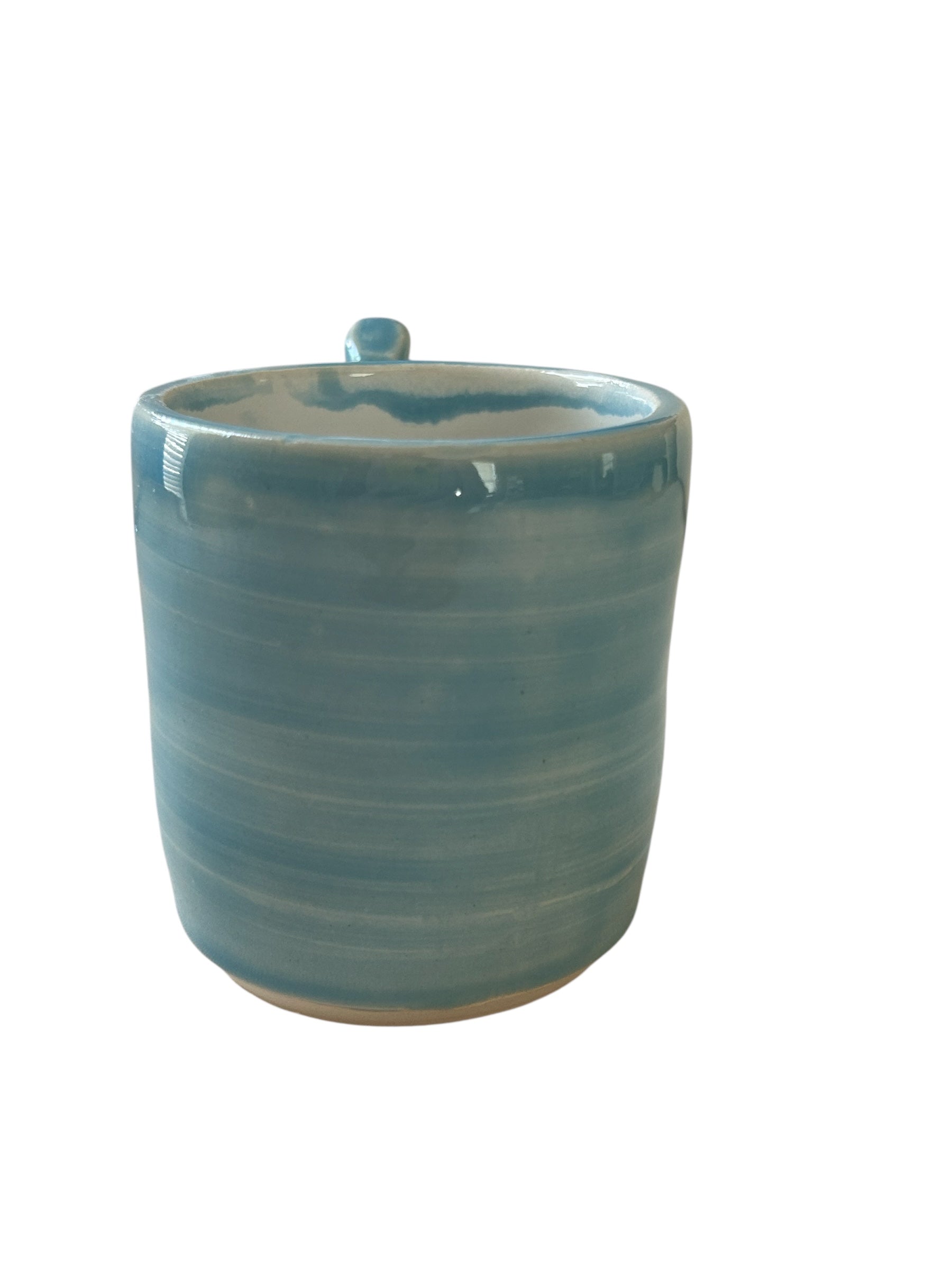 Wheel-thrown mug with a rope handle in blue lagoon.